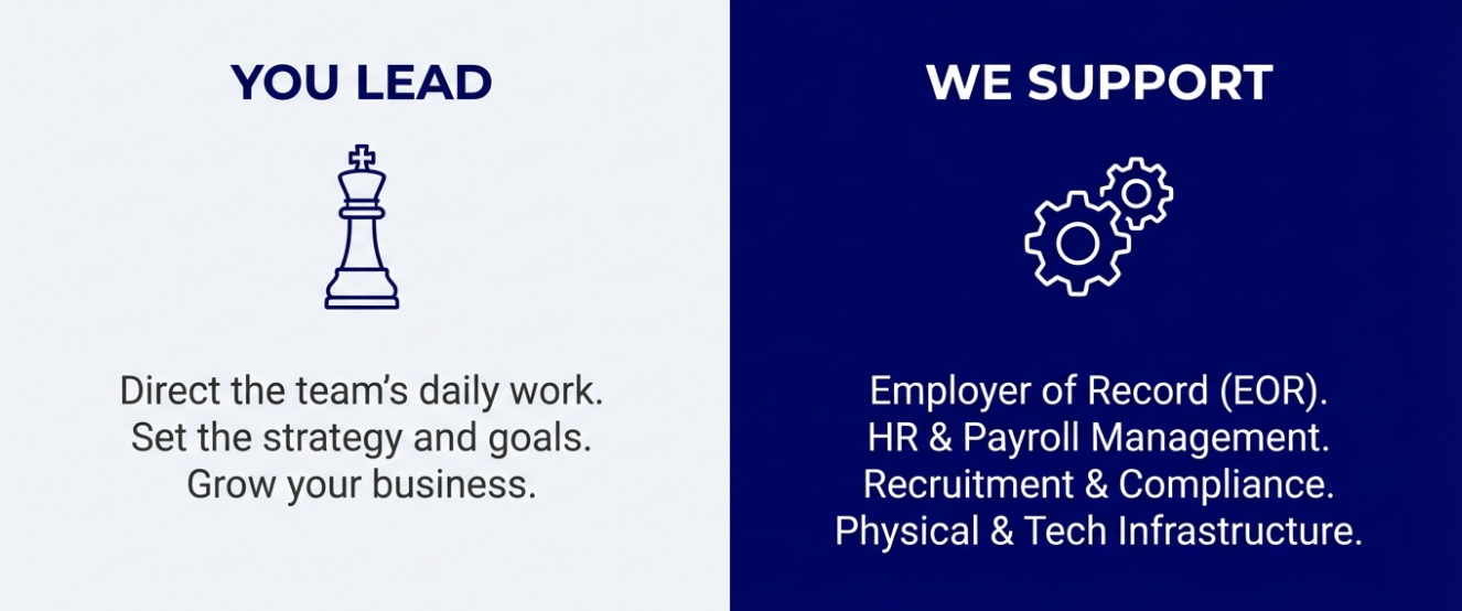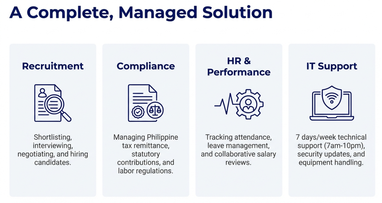 Employ the person through Vertaccount Philippines, Inc., a Philippine registered corporation.